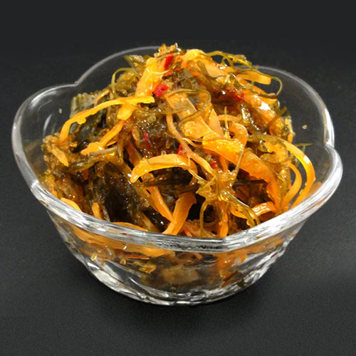 | 原材料 | カラフトシシャモ卵(アイスランド)、いか加工品、しょうゆ(小麦・大豆を含む)、砂糖、昆布、米発酵調味料、還元水あめ、食塩、たん白加水分解物、酵母エキス、赤唐辛子、かつお節粉末、かつおエキス/ソルビット、調味料(アミノ酸等)、酒精、増粘多糖類、着色料(黄4、黄5、赤102、赤106) |