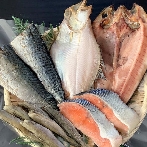 | 内容量 | ・真ほっけ開き ×1枚 ・宗八かれい ×1枚 ・こまい ×100g ・さば ×2枚 ・新巻鮭甘塩造り切身 ×2枚 |